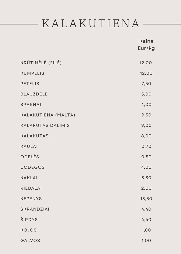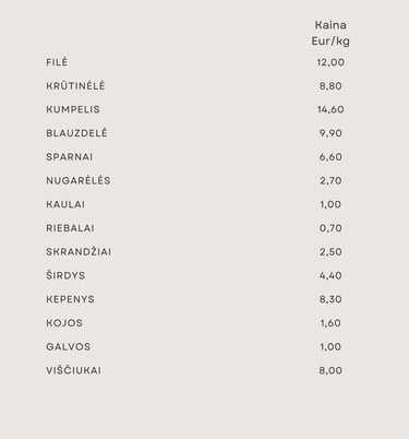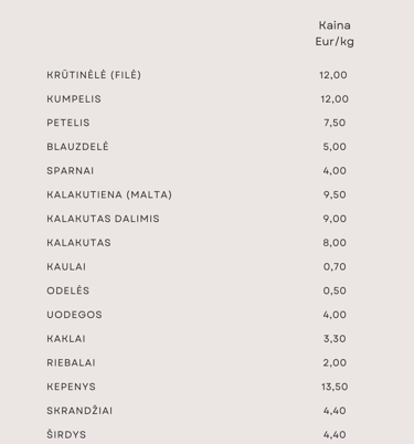 Kviečiame susipažinti su Kiškio kalakutų prekiaujama produkcija ir jos kainomis.